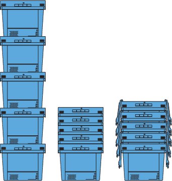 Tip Boja Nosivost Naslagana nosivost Volumen Vanjske dimenzije (DxVxŠ) Unutarnje dimenzije (mm) Komada / pak Ref broj
